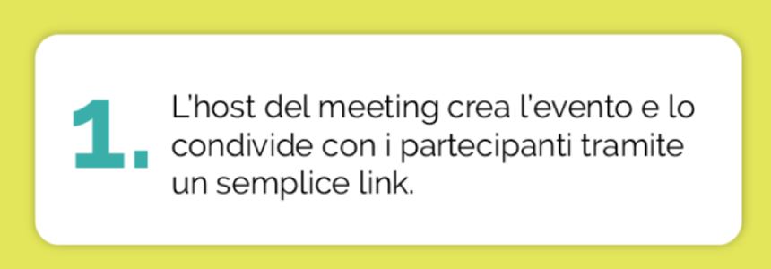 L'host del meeting crea l'evento e lo condivide con i partecipanti tramite un semplice link