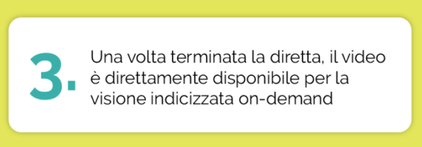 Terminata la diretta, il video è direttamente disponibile per la visione indicizzata on-demand